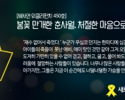 ‘참말로 지긋지긋하다. 할 만큼 하지 않았는가. 이제 경제도 생각해야지?’ 2015년 4월 16일, 내일은 세월호 참사 1주기입니다. 언제부터인가 4.16 세월호 참사에 대한 슬픔과 분노를 대신하여 위와 같은 말이 중심부로 올라오고, 유가족들에게 상처를 주는 언어폭력이 버젓이 자행되고 있습니다. 그러나 그러한 언어폭력을 일삼는 사람들이 잊지 말아야 할 것이 있습니다. 자신 또한 그와 같은 피해자가 될 수 있다는 사실을 말입니다. 사람들은 해마다 이맘때면 봄꽃이 흐드러지게 피는 산이나 교외에서 계절의 향연을 즐기기에 여념이 없습니다. 추운 겨울을 뚫고 나오는 새순마저 그냥 먹을 수 있는 이 좋은 계절에, 마치 죄인처럼 처절한 ‘순애보’를 외치는 사람들이 있습니다. ‘재수 없어서 죽었다.’ 누군가 무심코 던지는 한마디에 심장이 뜯겨나가도, 생떼 같은 아이들의 죽음이 못난 애비, 애미 탓인 것만 같아 그저 오열하는 사람들이 있습니다. 도저히 가만히 있을 수 없어 걷고, 절하고, 굶고, 울어 [...]