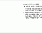 2015년 9월 주요 고용동향 ▣ 고용률, 실업률, 경제활동참가율 - 2015년 9월 고용률은 60.9%로 전년동월대비 0.1%p 상승 - 실업률은 3.2%로 전년동월과 동일 - 경제활동참가율은 62.9%로 전년동월대비 0.1%p 상승 - 고용률, 경제활동참가율이 다시 상승함. 지난 8월에는 전년동월대비 취업자 수 증가가 30만 명 미만에 머물면서 고용률, 경제활동참가율이 하락하였음. 하지만 9월 취업자 수가 전년동월대비 34만 7천 명 증가하면서 고용률과 경제활동참가율이 다시 상승한 것으로 나타남 - 2015년 들어 고용지표 개선 속도가 느려지고 있음. 이는 상대적으로 일자리 창출 속도가 느려졌기 때문임. 경기 성장세 둔화가 지속되고, 대외적 경제 불확실성이 계속되면 기업의 투자 증가는 일정 수준에 머무를 가능성이 큼. 이 경우 정부는 소비를 진작시켜 유효수요 확대를 견인함으로써 일자리를 창출하는 방안을 고민할 필요가 있음 - 여성 고용률의 상승이 두드러짐. 남성 고용률은 하락한 반면, 여성의 고용률은 크게 상승함 [...]