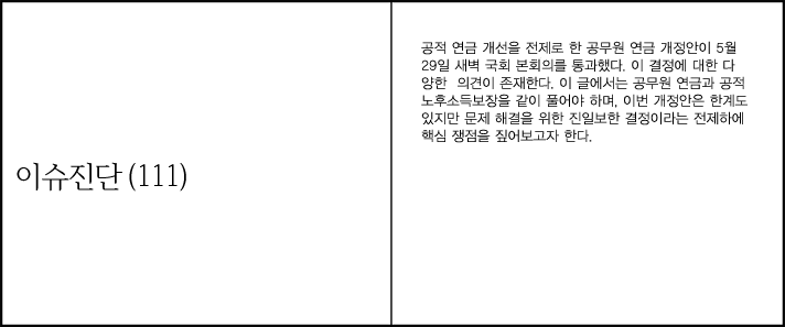 이슈진단(111) 공무원 연금 개정안으로 열린 ‘기회의 창’