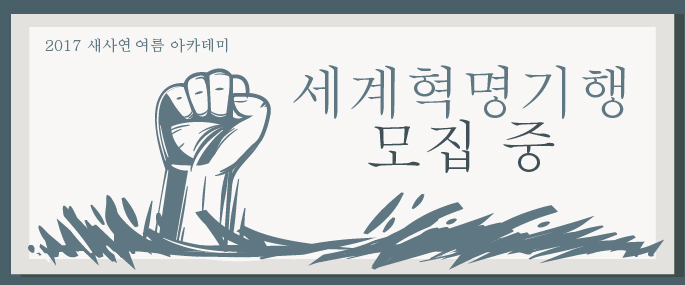 [모집] 2017 여름아카데미 – 세계 혁명 기행By 새사연 미디어회원센터|2018-06-29T17:02:32+09:002017/06/27|Categories: 새사연 공지|Read More 0