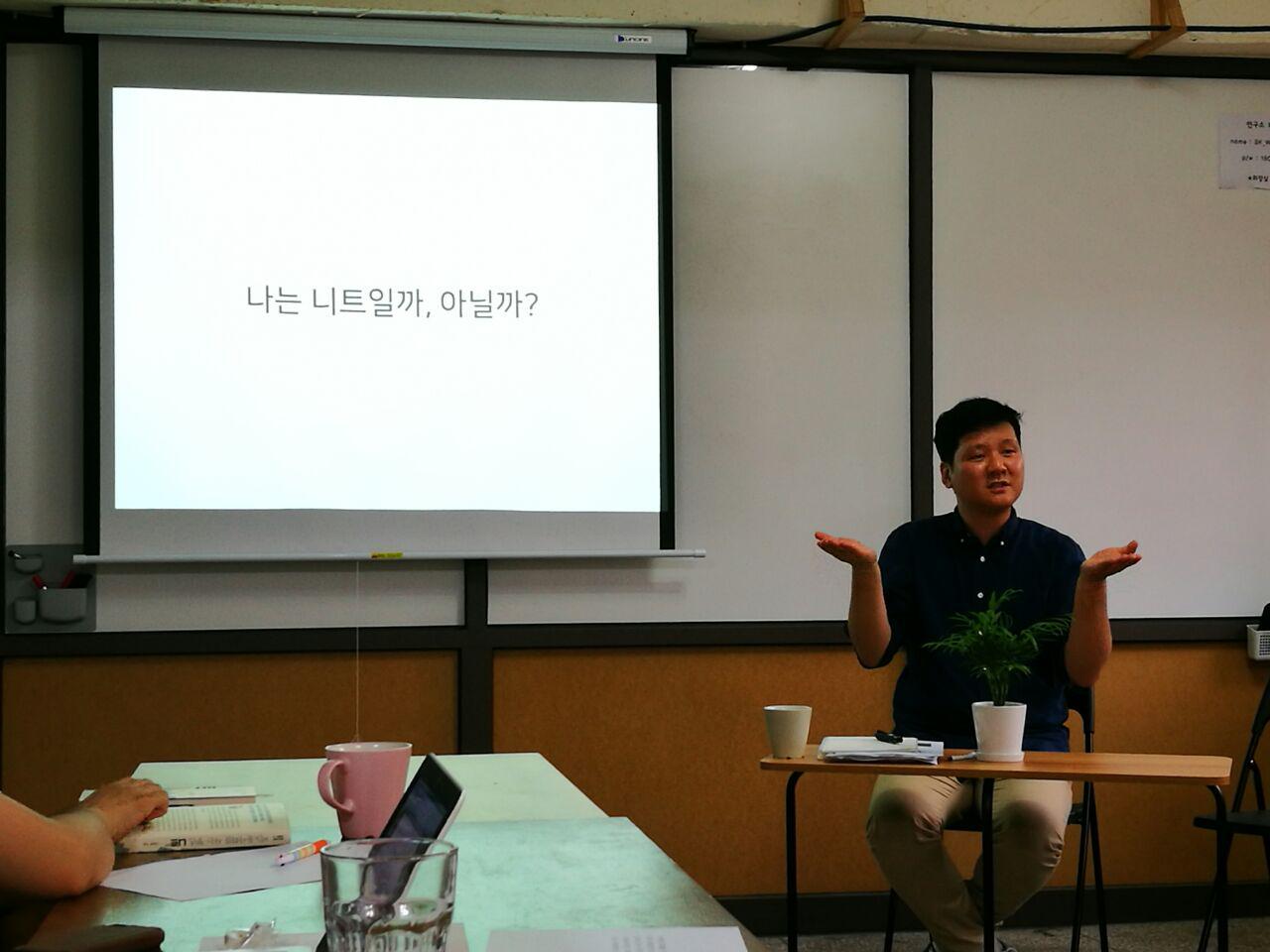 『비노동 사회를 위한 청년, 니트』 저자 특강 세미나에 참여한 후기를 쓰기에 앞서 여러 가지 반성을 먼저 해야겠다. 나도 사실은 니트였던 적이 있다. 학교를 휴학하고 좋아하는 책을 읽으며 강연을 들으러 다녔던 시기가 있었다. 당시에 자기계발 욕구도 없었고 돈을 벌 필요도 없었다. 몇 달 간 해외여행을 간 적도 있다. 대학을 졸업한 후에도 취업하지 않은 상태로 별 일 없이 몇 달을 보낸 적이 있다. 물론 대학생일 때 보다 불안한 마음이 있었지만, 내가 떠올린 비생산적인 인간의 범주에 그때의 내 모습을 겹쳐본 적은 없다. 몇 번의 기간 동안 니트 상태였지만, 나는 단지 조금 쉬거나 색다른 경험을 했을 뿐이지 내 편견 속 니트의 모습은 아니었다. 아직도 그때 느꼈던 여유와 평온한 감정은 지금의 나를 지탱하는 에너지이기도 하다. 니트 상태의 인간은 비생산적이므로 게으르고 도덕적이지 못하다는 건 순전히 나의 편견이자 허구였다.