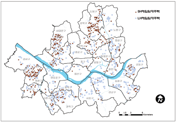 ▲LH공사와 SH공사 서울시 매입임대주택의 분포
