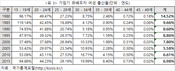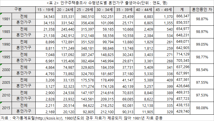 청년혼인가구 출산율은 2015년이 1985년보다 오히려 높아