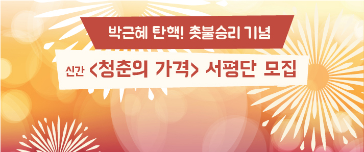 탄핵이 되었습니다! 새사연 신간 <청춘의 가격> 도 나왔습니다! 탄핵기념 이벤트로!! 청춘의 가격 서평단을 모집합니다. 자세한 내용은 아래를 참고해 주세요!! ■ 모집기간 2017년 3월 15일 (수) ~ 2017년 3월 16일 (목) ■ 서평단 모집 인원 총 [...]
