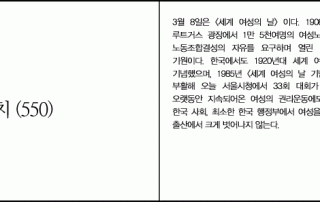3월 8일은 <세계 여성의 날> 이다. 1908년 3월 8일 미국 [...]