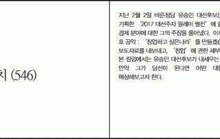 지난 2월 2일 바른정당 유승민 대선후보는 JTBC <썰전>에서 기획한 ‘2017 [...]