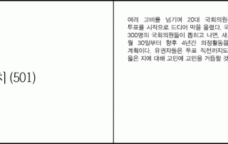 여러 고비를 넘기며 20대 국회의원총선거가 재외국민투표를 시작으로 드디어 막을 올렸다. [...]